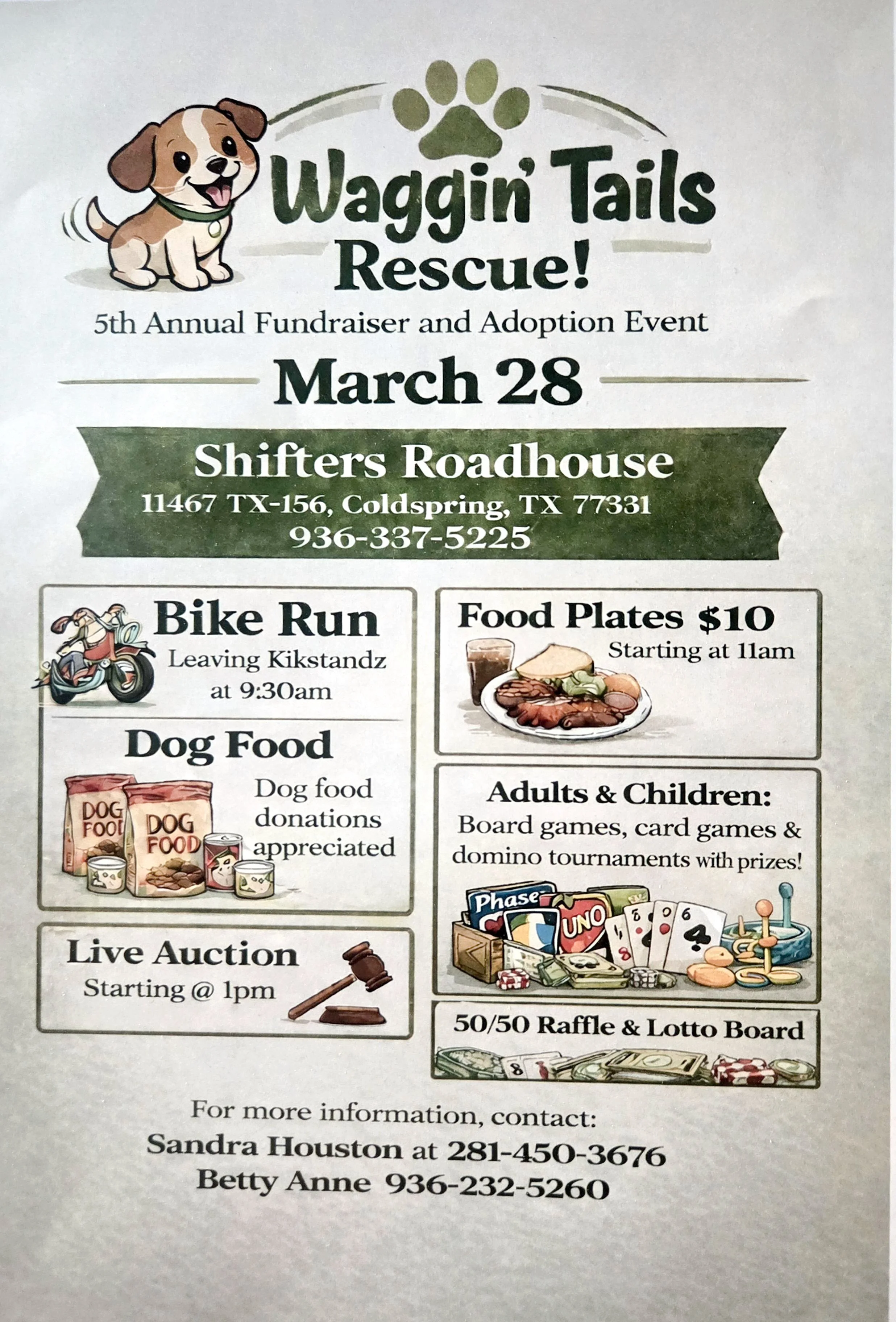 Bike Run, Food Plates, 50/50 Raffle, Live Auction, Games and prizes